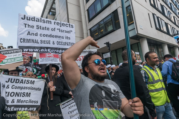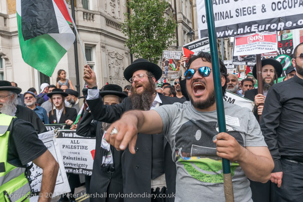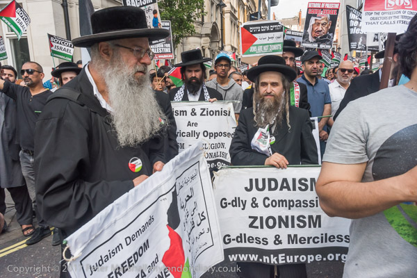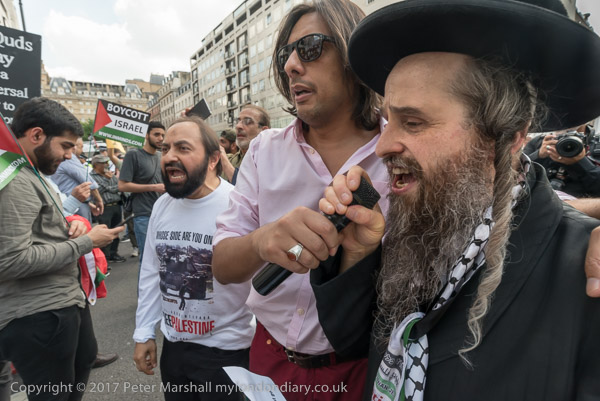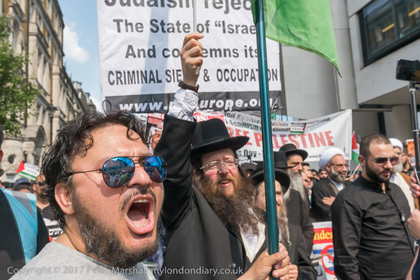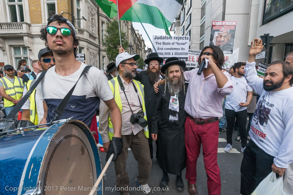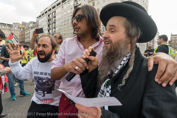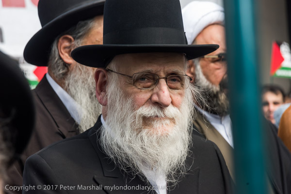 One of the Neturei Karta joins in leading the chanting of slogans