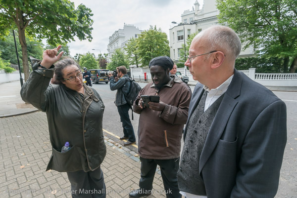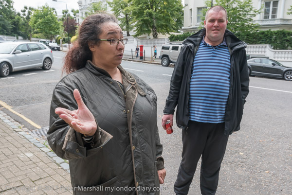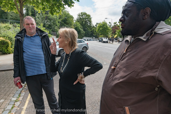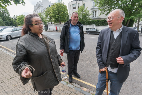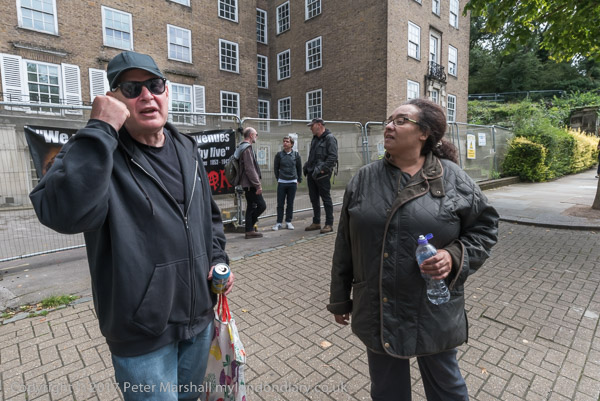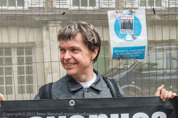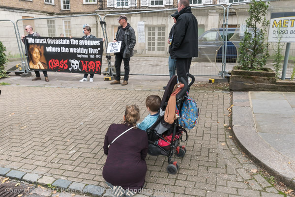 Sid Skill holds the banner - and behind him a Class War sticker on