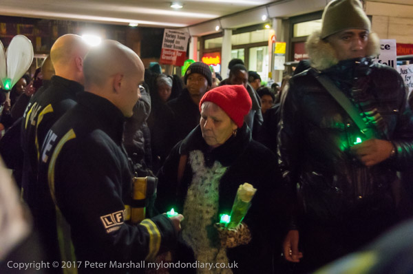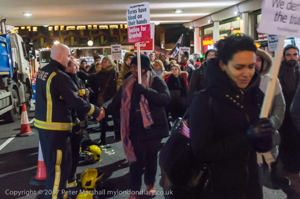 The march halted briefly on Ladbroke Grove where firefighters formed