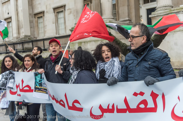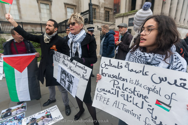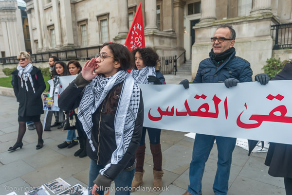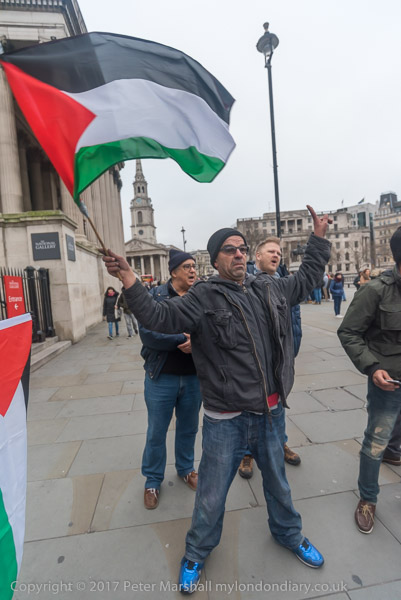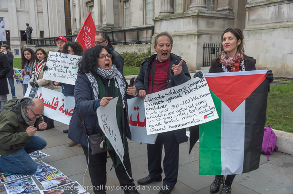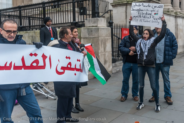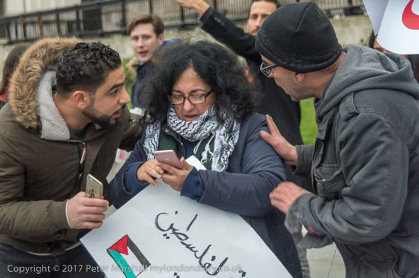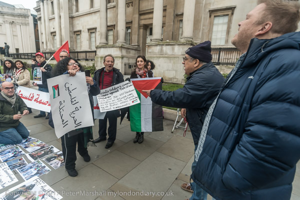 The two trying to disrupt the protest tell the protesters that Palestine