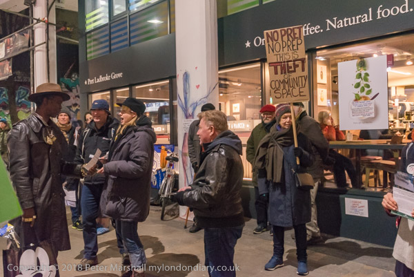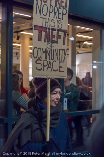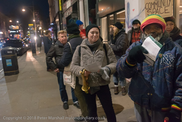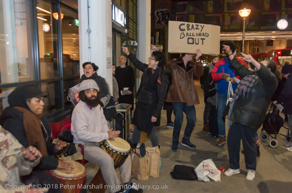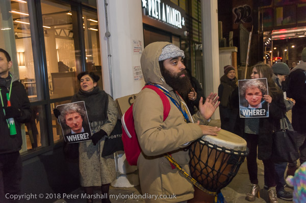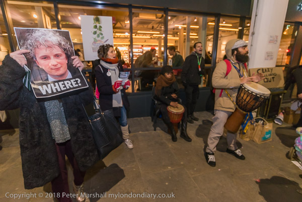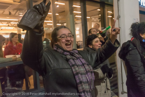 People dance and shout 'Shame on You!' pointing to Pret-a-Manger