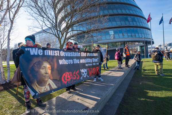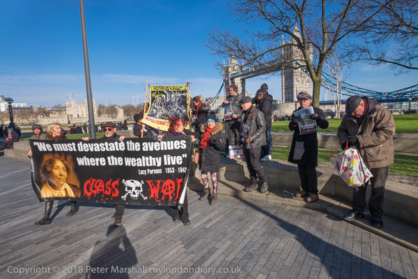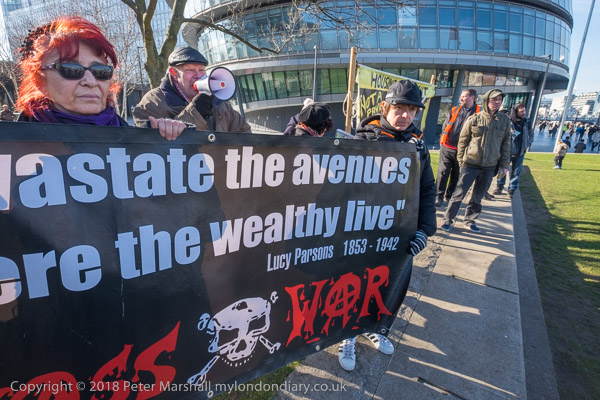Class War's banner had a quototation from US anarchist Lucy Parsons
