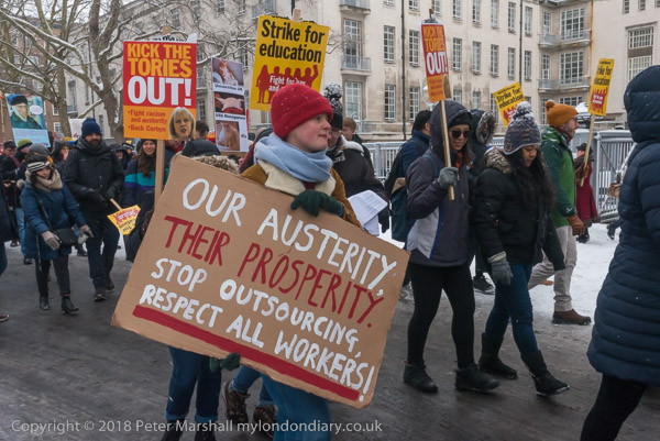 'Our Austerity, Their Prosperity. Stop Outsourcing, Respect All Workers'