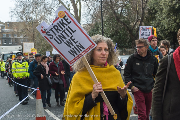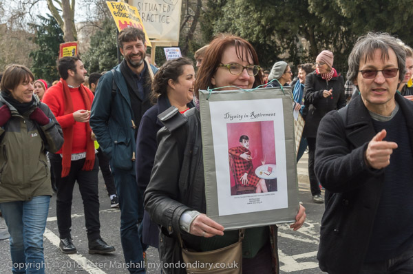 The marchers were going to a rally in Methodist Central Hall, but I decided