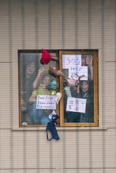 'Freedom Freedom SIX months' and 'SOS' and women wave underclothes