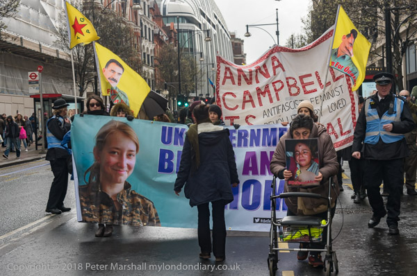 Plan C's banner 'Solidarity with Afrin - Defend Woman's Revolution!,
