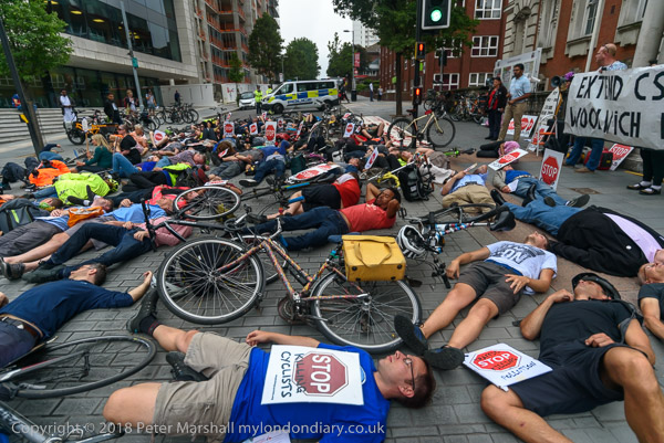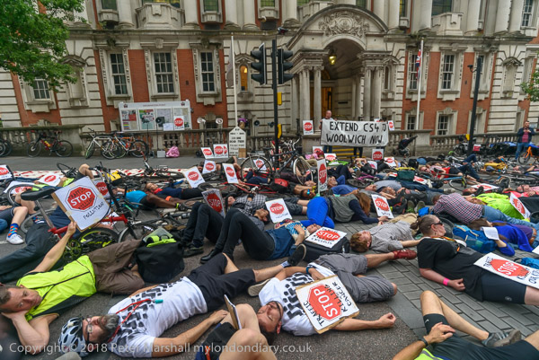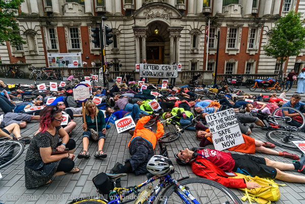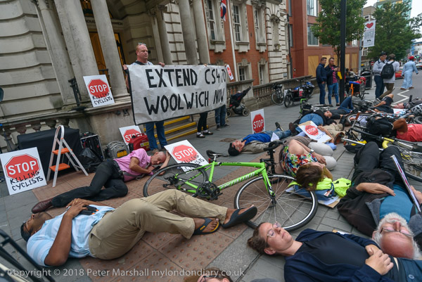 The die-in outside Woolwich Town Hall followed the deaths of 3 cyclists