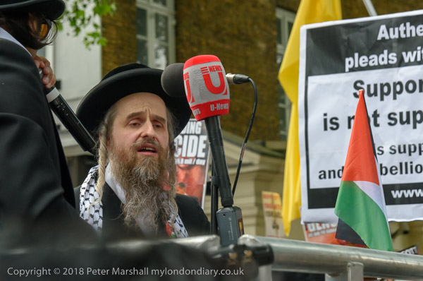 A Neturei Karta speaker gets huge support from the crowd - and