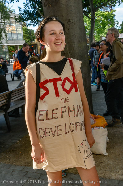 Marianne Murray in her 'Stop the ELephant Development' dress