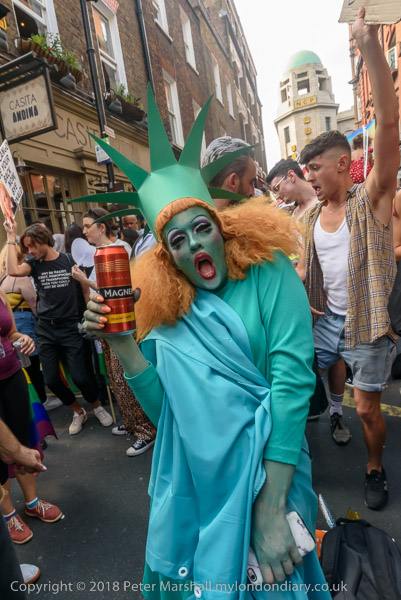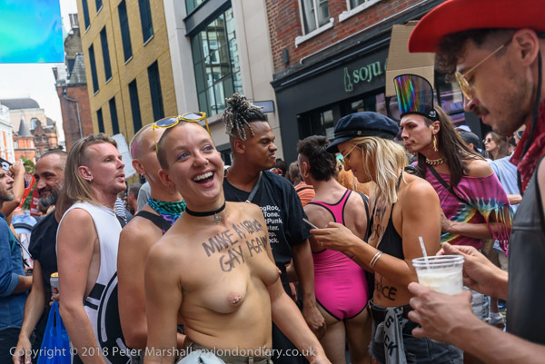 'A woman who is dancing topless has 'Make America Gay Again' across