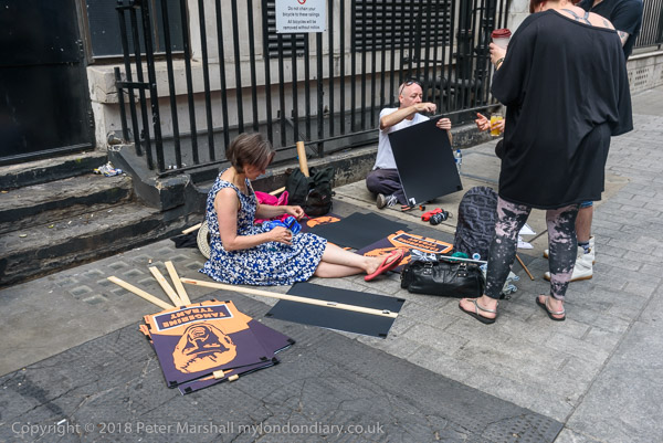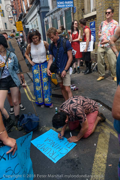 Elsewhere in Soho people are making their placards for the 'Together
