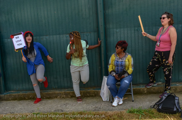hear some of the women in the prison shouting a welcome.