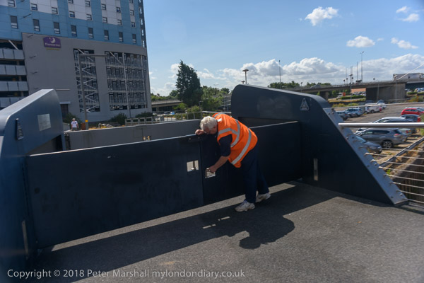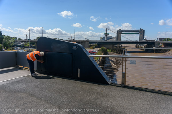 Closing the land gate to Scale Lane Bridge