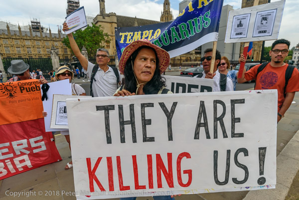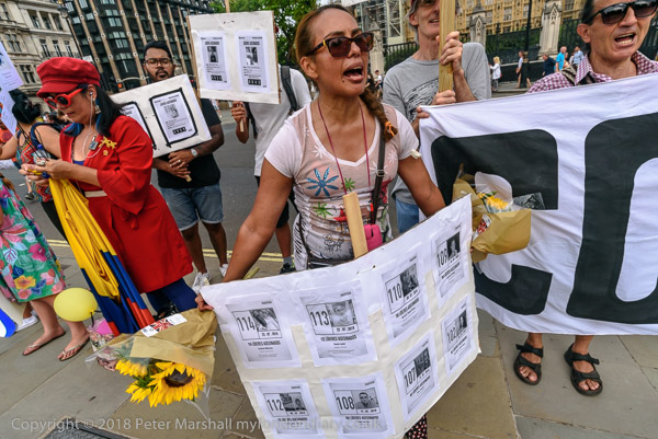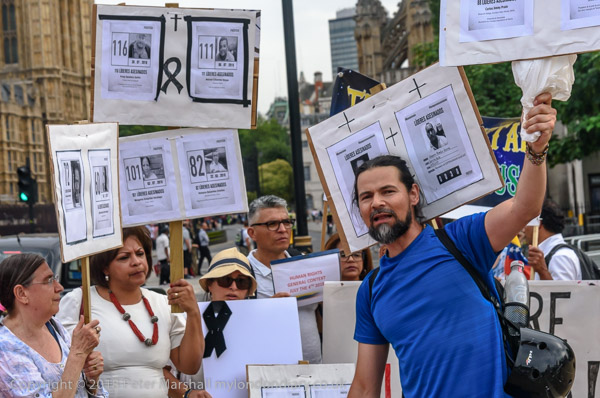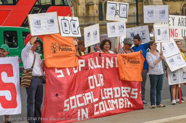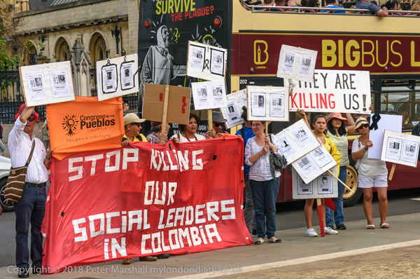 Protesters held pictures showing the assassinated community leaders
