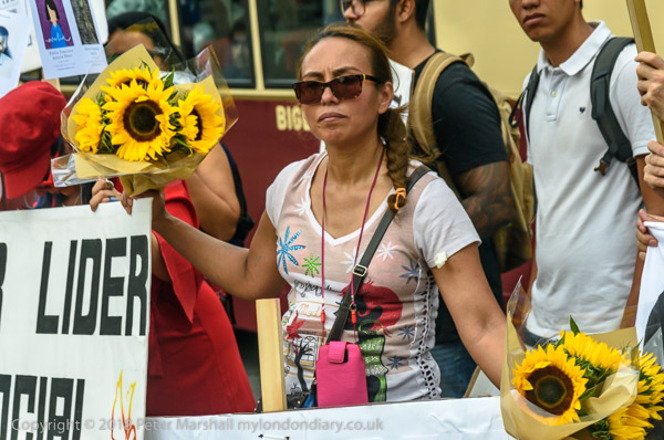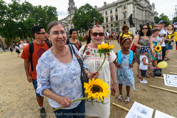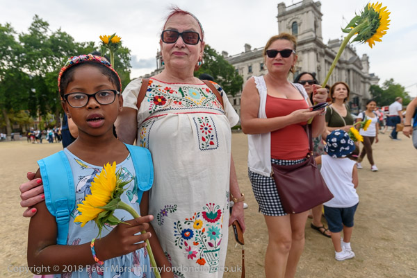 Some had brought sunflowers to the protest
