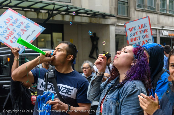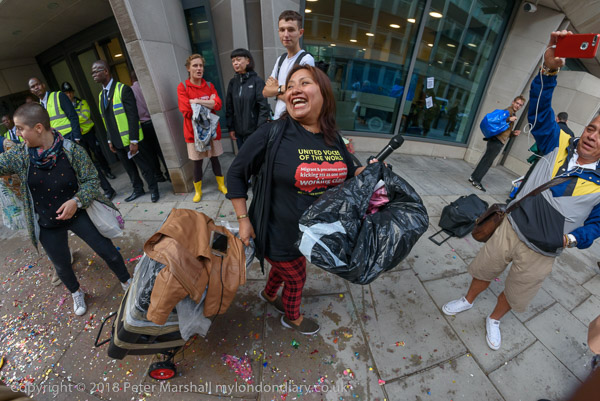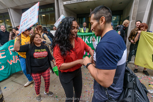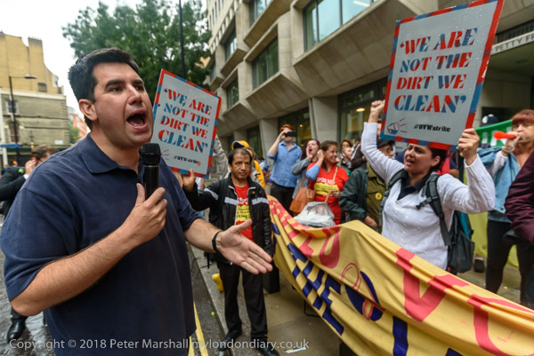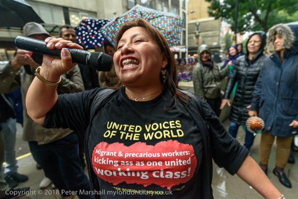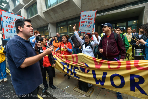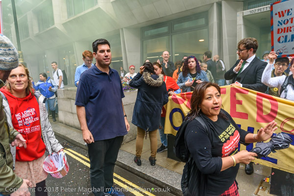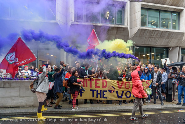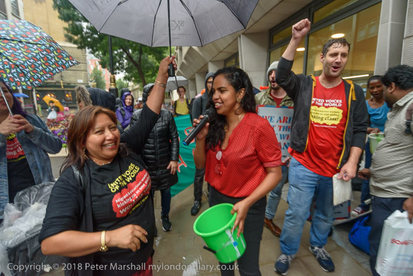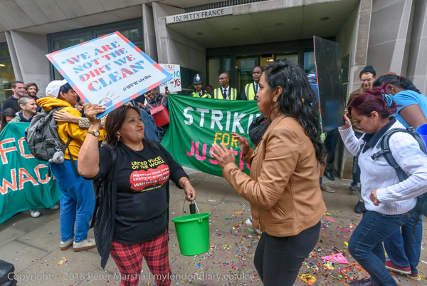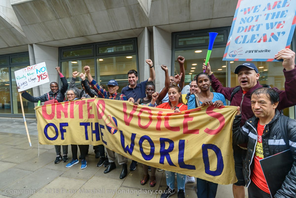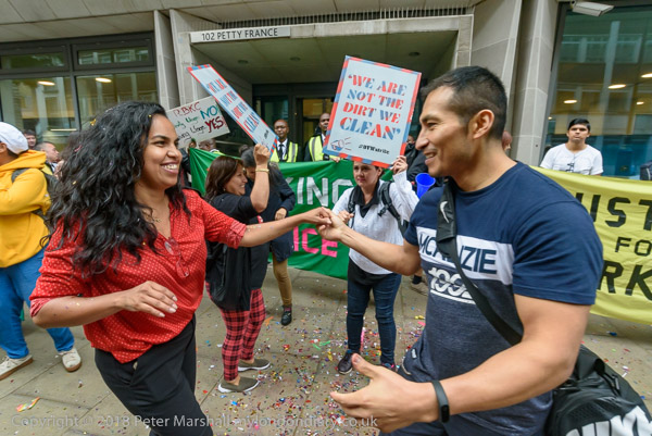 Richard Burgon raises a fist with the UVW cleaners