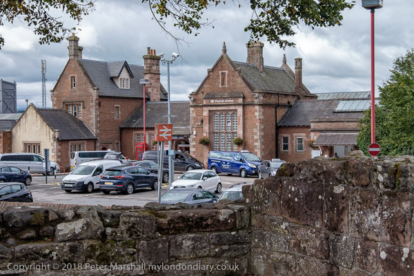 The station is just across the road from the castle