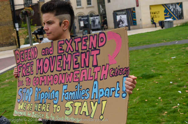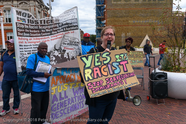 in Brixton, holds a poster 'Yes, It's Racist'