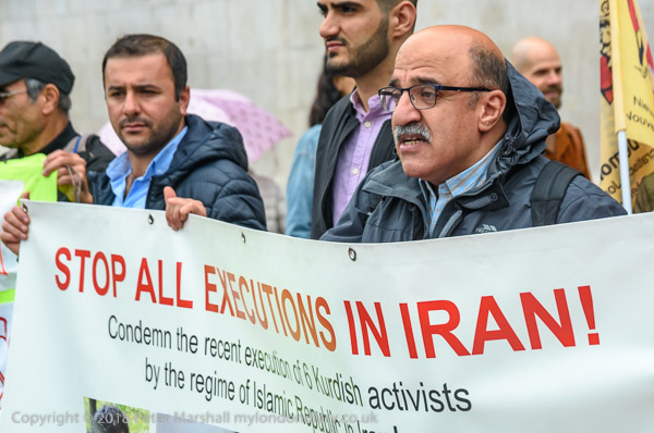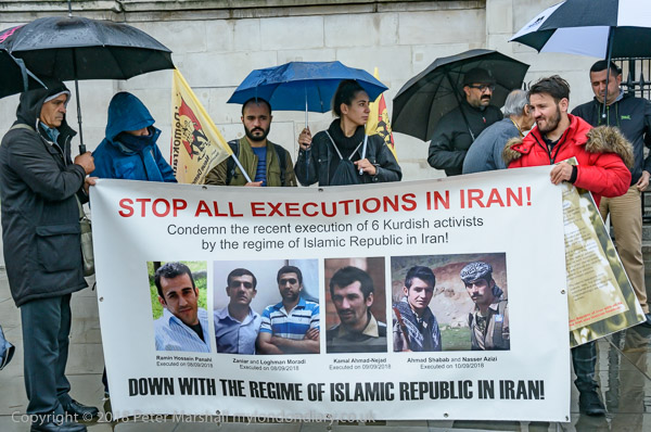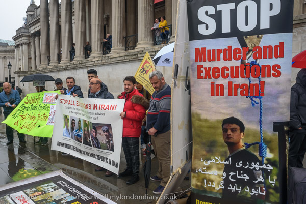 Protesters against the Islamic Republic of Iran, which imprisons and