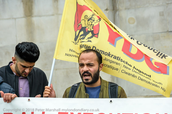 A banner calls for solidarity with the Syrian Kurdish area of Afrin,