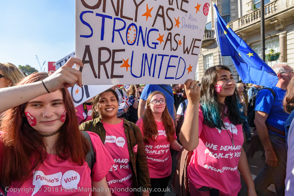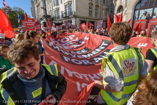THe Stop Trump Coalition carry a giant 'Stop Tory Brexit' banner