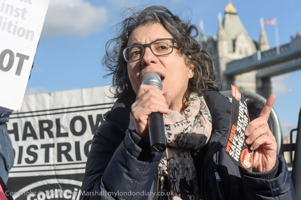 Eileen Short of Defend Council Housing speaks and calls for the protesters