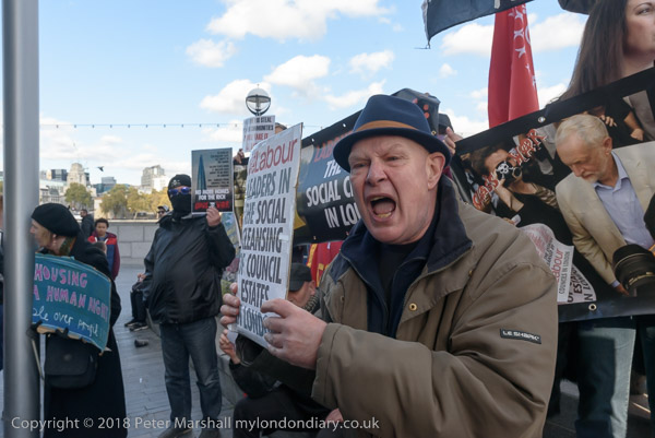 Martin Smith of Class War shouts loudly at Labour Party supporters