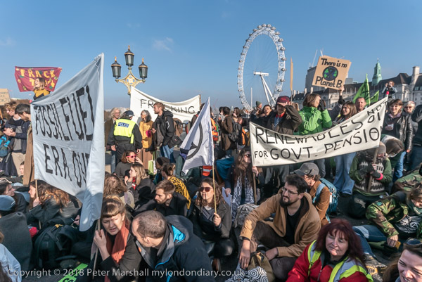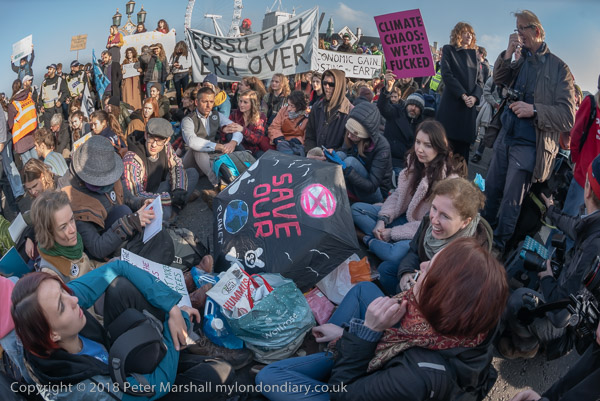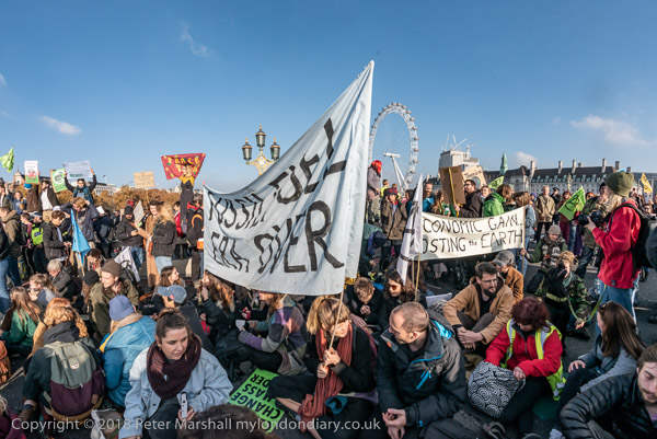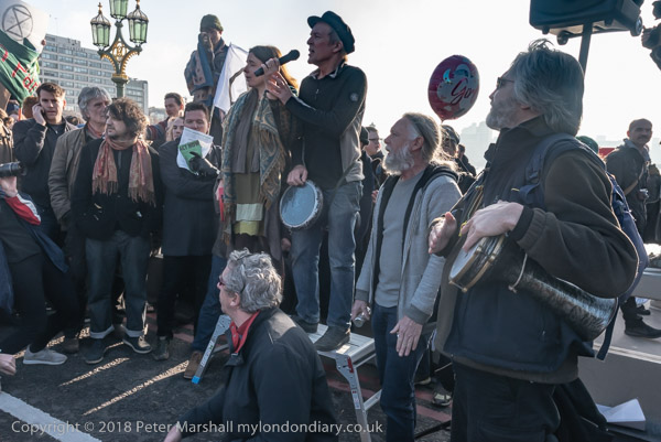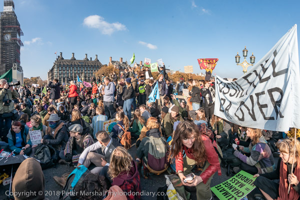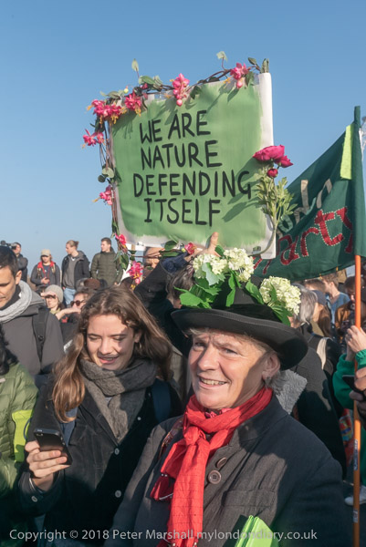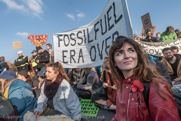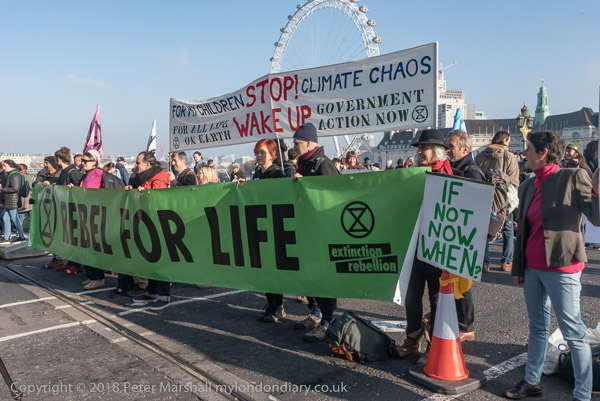 'Rebel For Life' the Extinction Rebellion main banner across the road