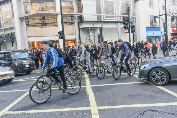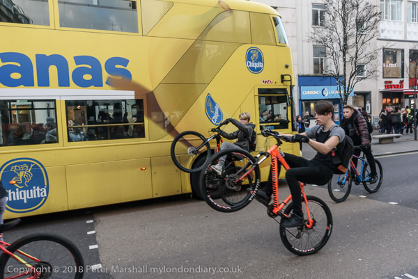 One guy with a grinning skull mask rode a 'Boris Bike' with a 'numberplate'