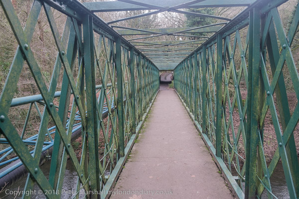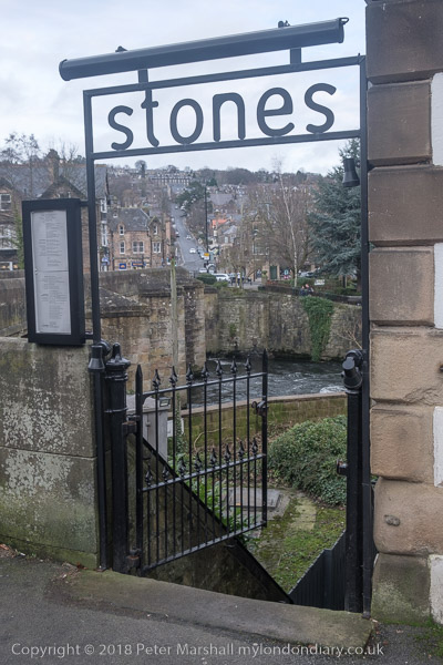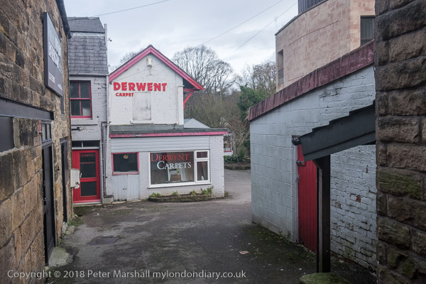 from the main road a footbridge goes across the River Derwent