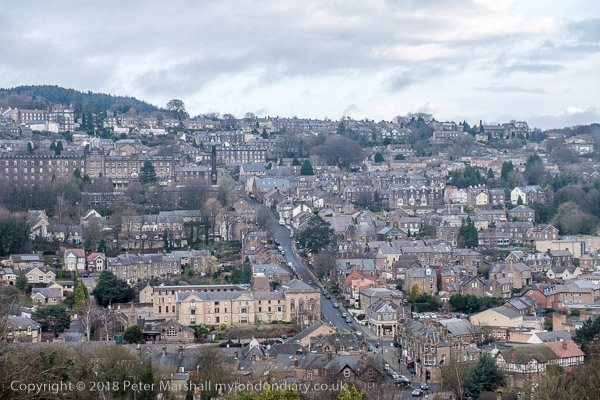 and the view of Matlock from Pic Tor, obscured by branches