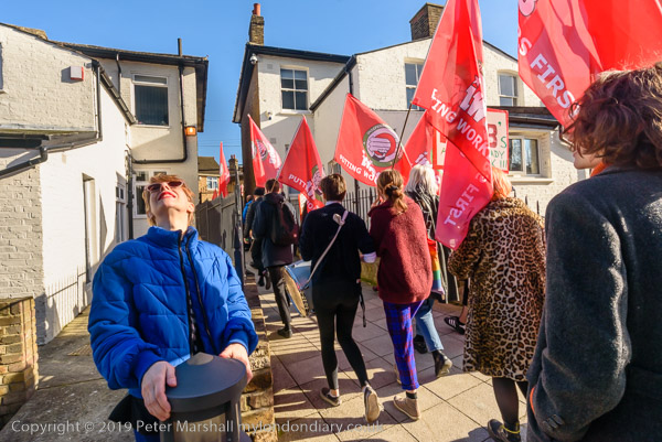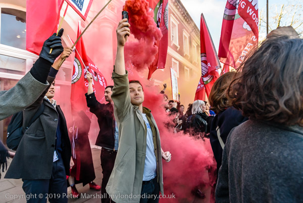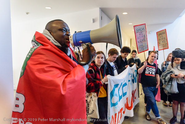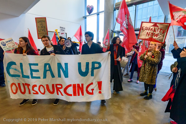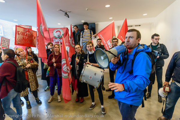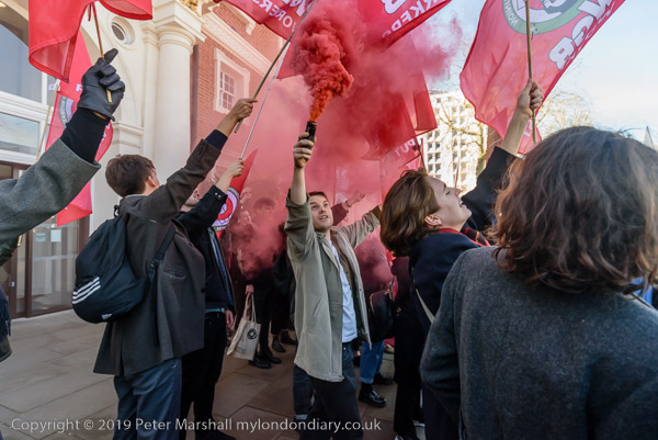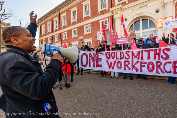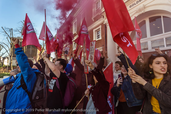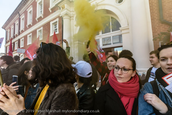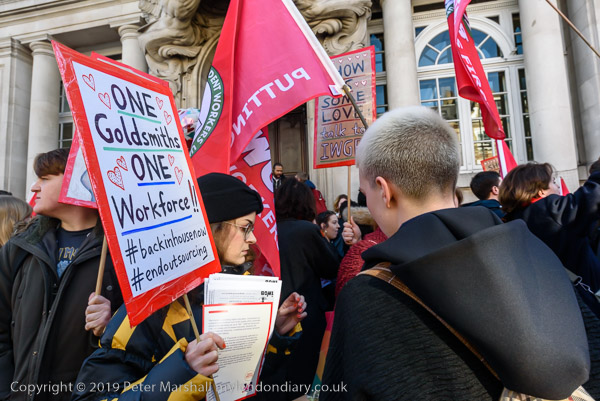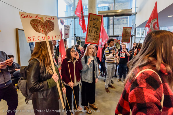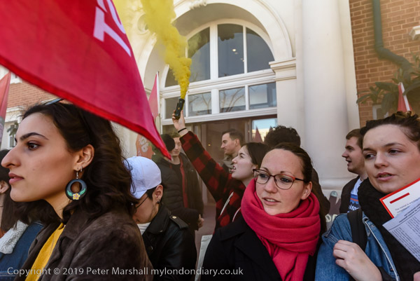 and then join the protesters in front of Goldsmiths. Someone sets