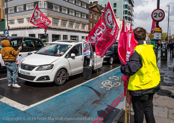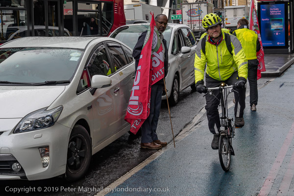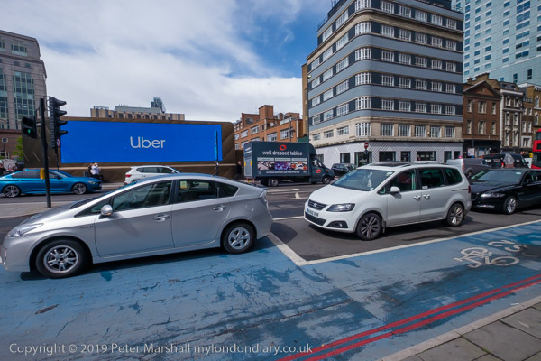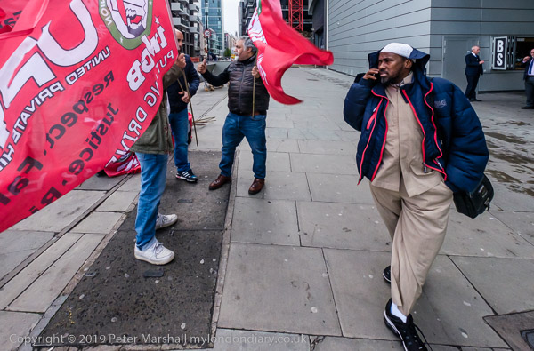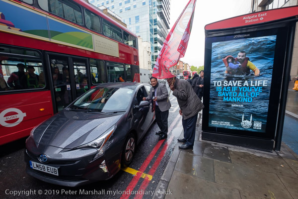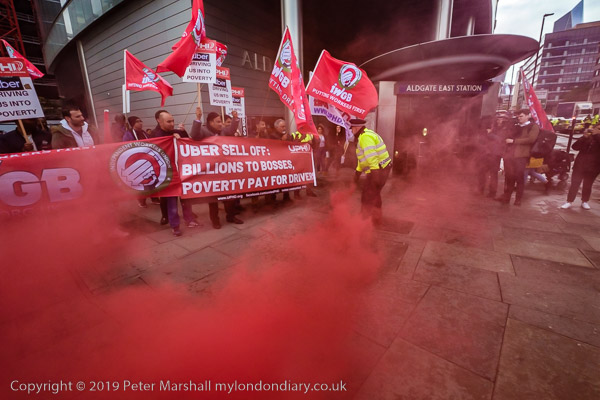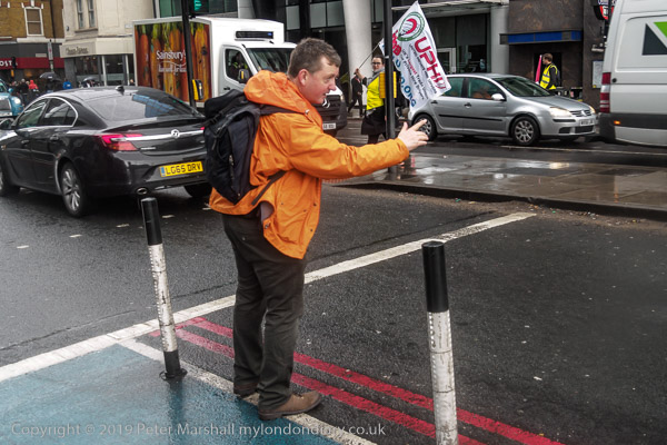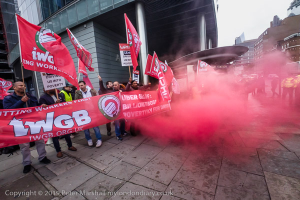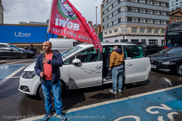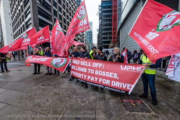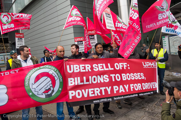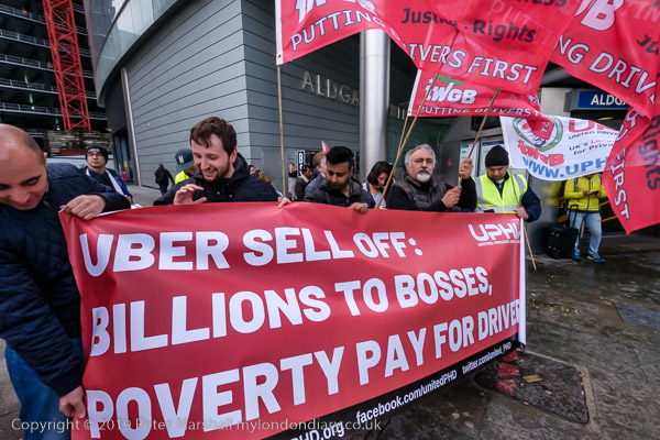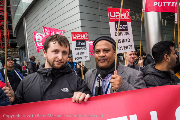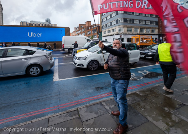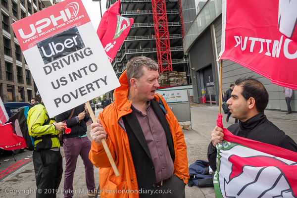 UPHD co-founder James Farrar holds a placard 'Uber Driving us into