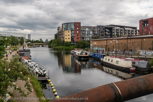 At left the Olympic stadium. The Hertford Union canal goes off to