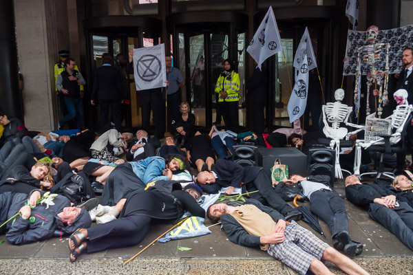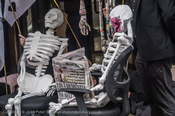 Two skeletons and a copy of the Daily Mail which has promoted climate