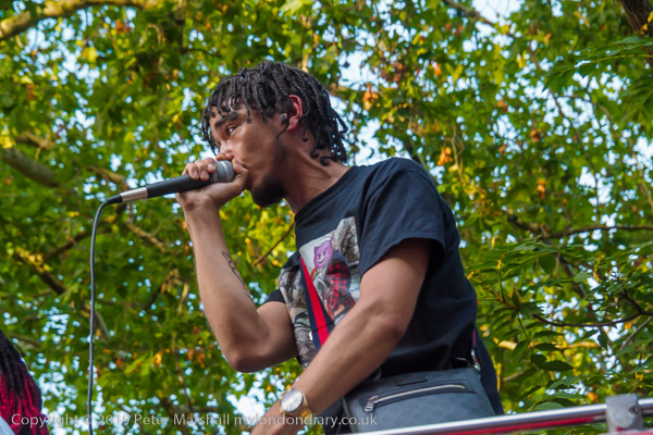 There were several speakers from the top of a bus
