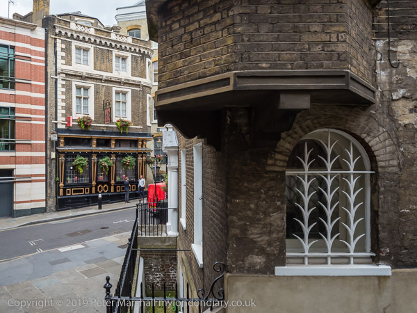 where the front entrance looks out onto St Andrew's Hill and The Cockpit