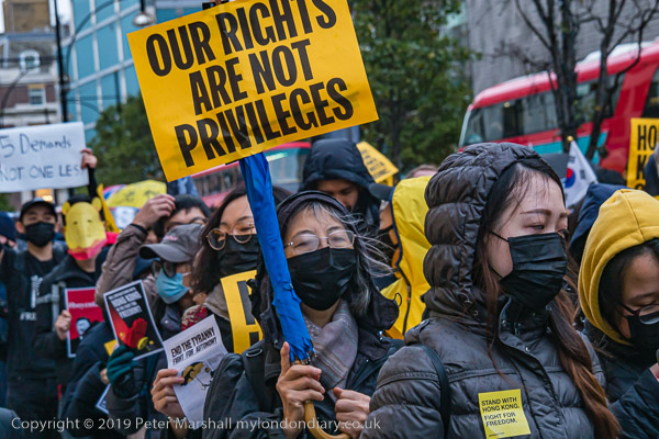 Others had printed posters -'Our RIghts Are Not Privileges', 'Hong