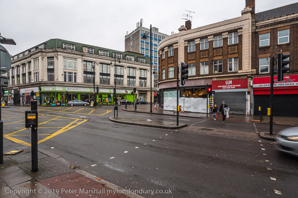 Brixton Road and Stockwell Rd. At left the former Quin & Axtens
