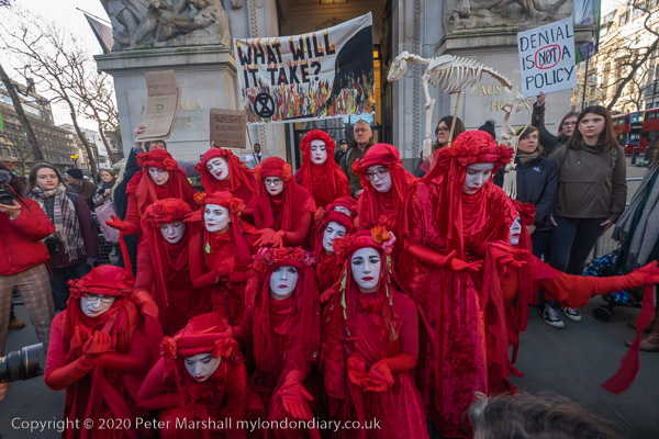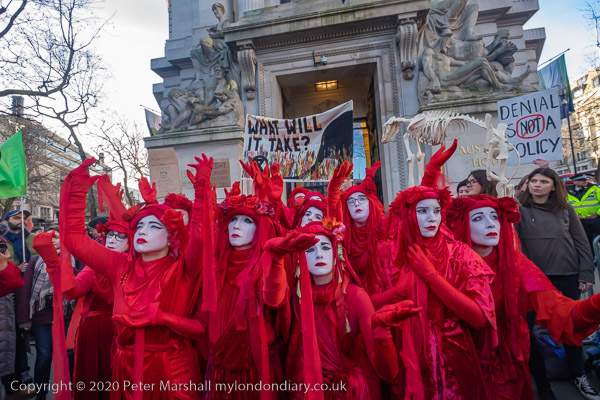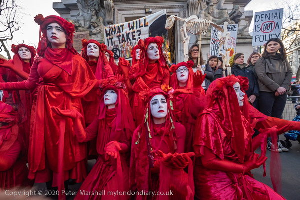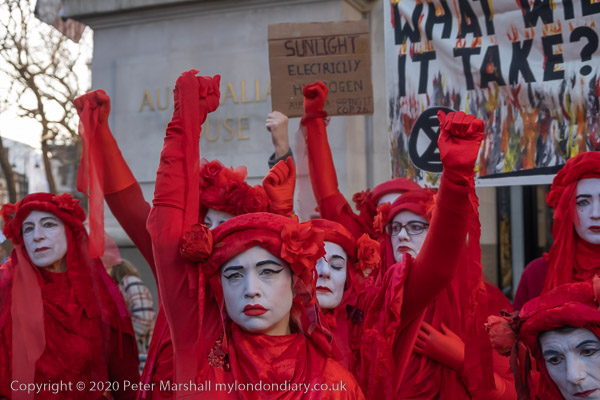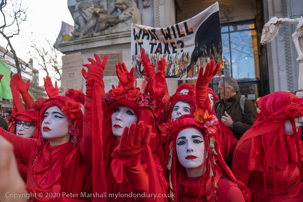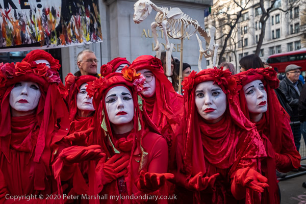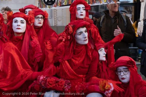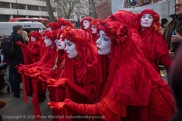 Extinction rebellion 'Red Brigade' mimes came to the protest
