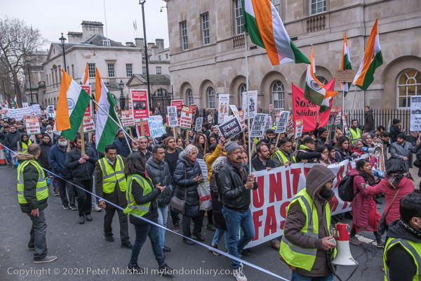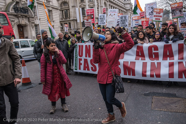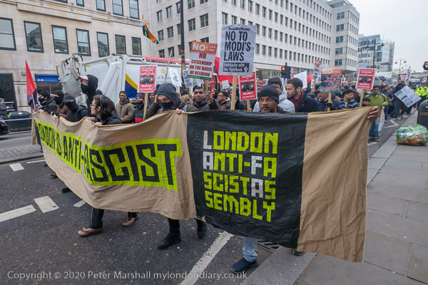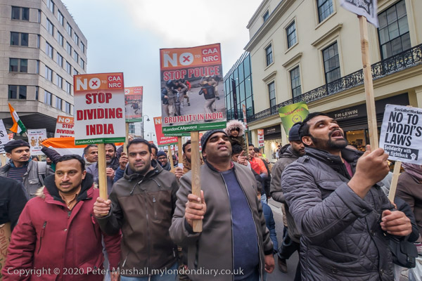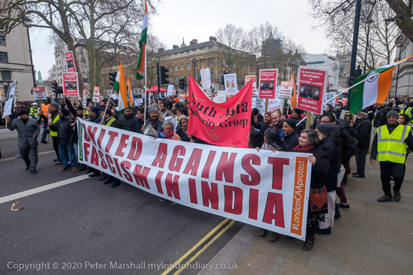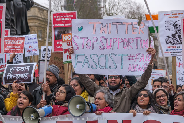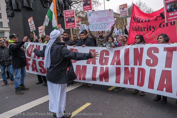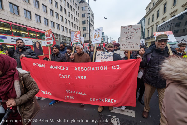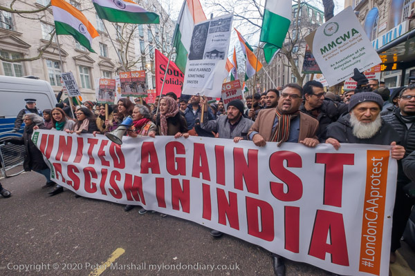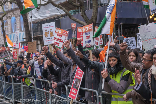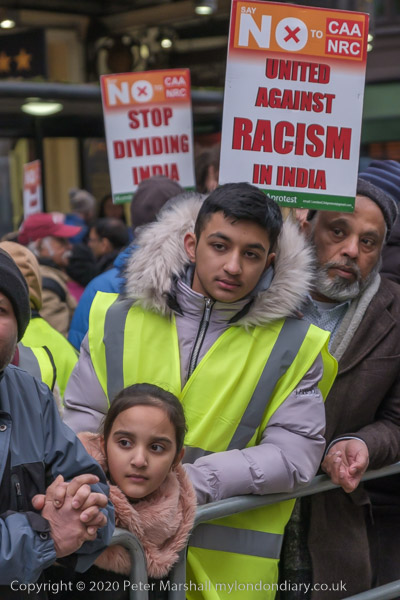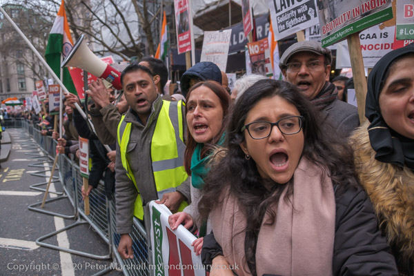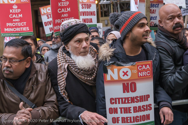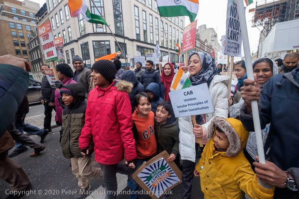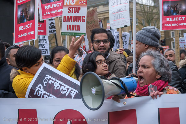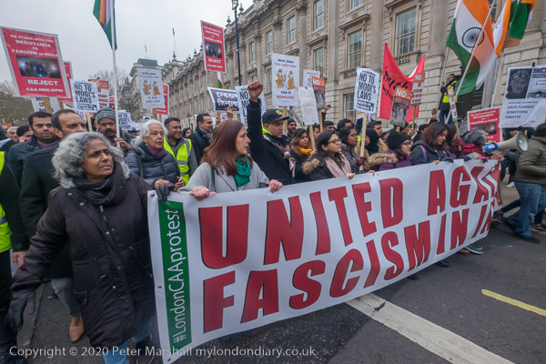 A woman carries a placard about the CAB (now passed and so the CAA)