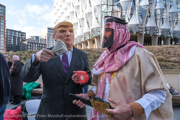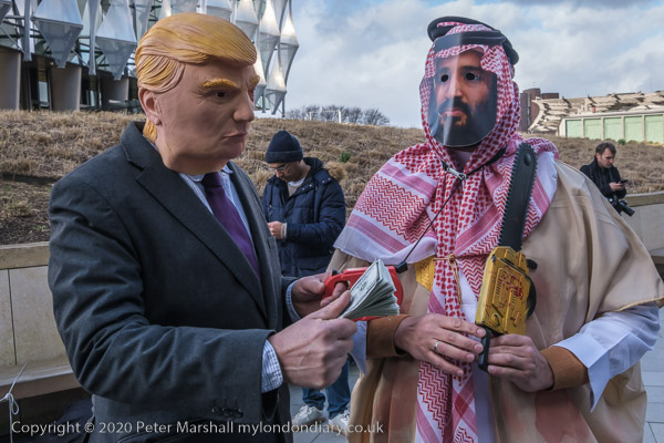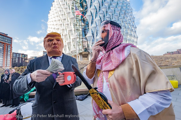 Trump hands a fistful of dollars to Saudi Prince Mohammad bin Salman,